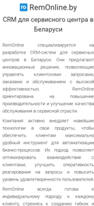 | SEO-описание | RemOnline специализируется на разработке CRM-систем для сервисных центров в Беларуси. |