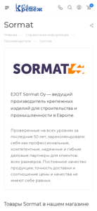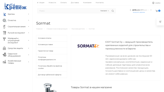 | Название / Заголовок | Купить товары Sormat оптом и в розницу в магазине крепежа и метизов “Еврокрепеж” |