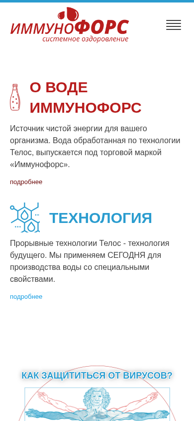 | AI-анализ | The website Immunoforce.by is dedicated to a product called Immunofors, which offers systemic healing. The title of the website is 'Иммунофорс – системное оздоровление'. The description mentions 'оздоровление' and 'системное' six times each, highlighting the focus on health and systemic improvement. The keywords include 'иммунофорс', 'оздоровление', 'технологии', 'системное', and 'защита'. The top words are 'иммунофорс' and 'оздоровление', further emphasizing the product and its benefits. The website also offers information on the product's research, application, technology, and contact details. The technology used, called Телос, is described as a future technology with special properties. The website also mentions the |