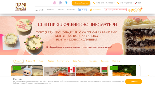 | Название / Заголовок | Пекарни Пирогова в Минске - доставка пирогов и тортов |