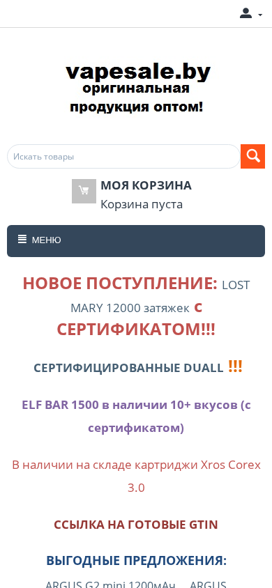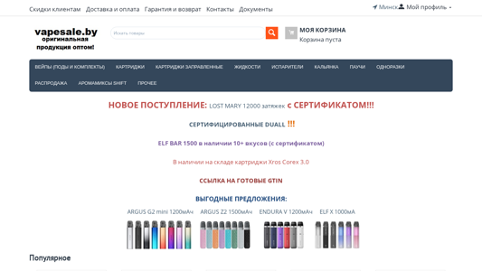 | AI-анализ | --- The portal Vapesale offers an extensive selection of electronic cigarettes and e-liquids for wholesale purchase in Minsk and throughout Belarus. With shipping available to all regions, customers can access a wide range of products at affordable prices. The website includes sections for vapes (pods and complete sets), cartridges, e-liquids, and accessories, as well as a new arrivals section. Users must log in to view prices and make purchases. The site also features options for delivery and payment, as well as a customer support section. |