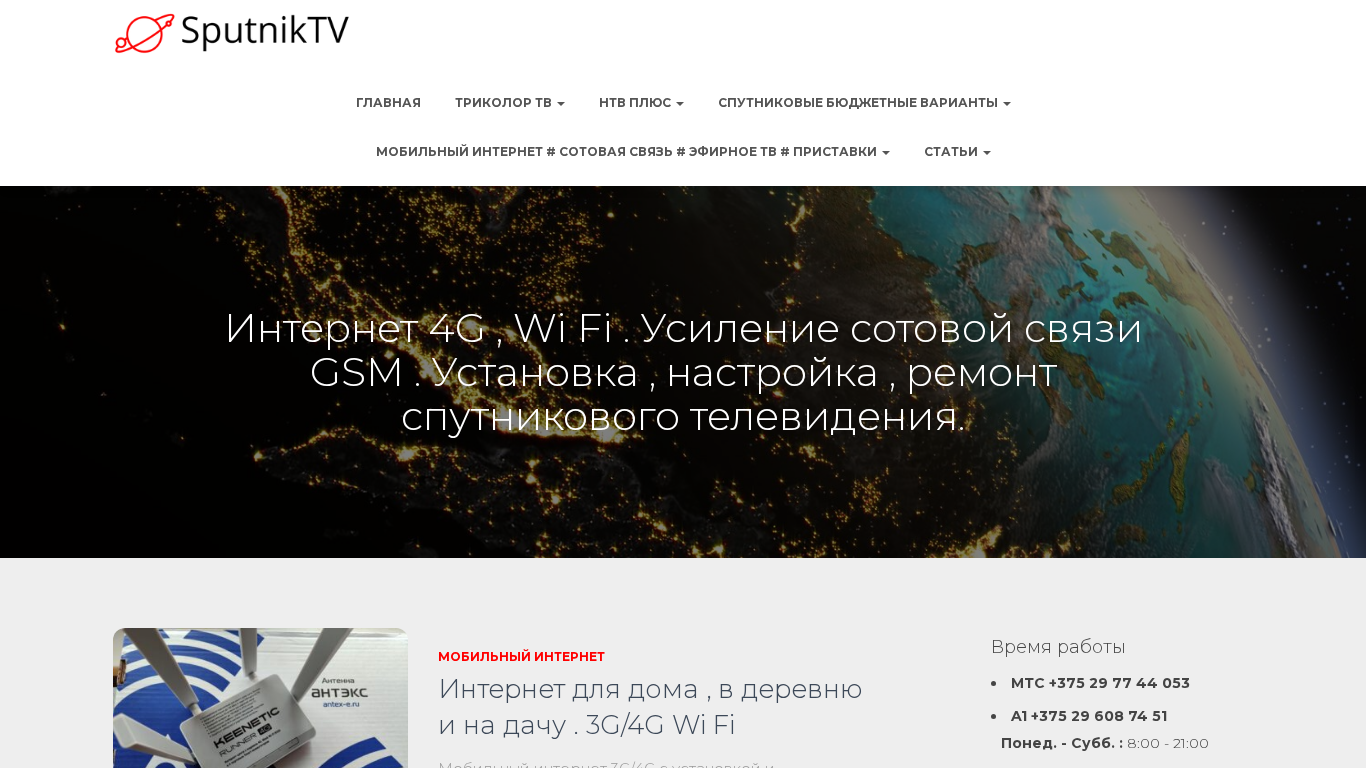 | SEO-описание | Интернет 4G , Wi Fi . Усиление сотовой связи GSM . Установка , настройка , ремонт спутникового телевидения. |