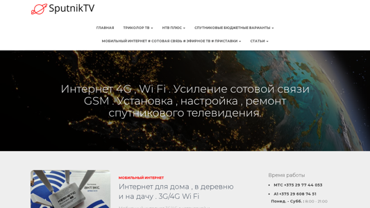 | AI-анализ | --- This online resource is dedicated to satellite television, Internet 4G, and Wi-Fi services, as well as mobile phone signal enhancement using GSM technology. The website offers installation, setup, and repair services for satellite television. The main sections of the site include TriColour TV, TriColour TV kits, TriColour TV receivers, TriColour payment and activation services, and frequency tables for TriColour TV and Express AT1 56E. Other services include budget satellite television options, satellite receivers for open channels, satellite antennas, and services for both satellite and terrestrial television. The site also features articles on various topics related to satellite and terrestrial television, including installation guides for TriColour TV and NTV+ on DVB S2-enabled televisions, and troubleshooting guides for TriColour TV and NTV+. Additionally, the website offers mobile internet services |