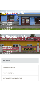 АдресМоторное масло, Аккумуляторы, Щетки стеклоочистителя, О компании, Магазин 1, ООО "ЭльмаТрейд", г. Гродно, ул. Горького, 87