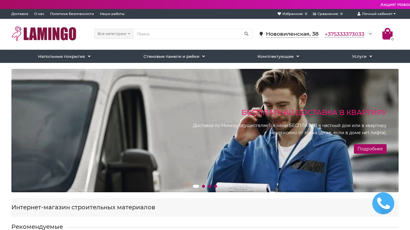 | AI-анализ | The website Lamingo.by is an e-commerce platform specializing in the sale of floor and wall coverings, including laminate, linoleum, vinyl flooring, parquet, and carpeting, as well as interior panels and complementary items. The site offers professional installation services and financing options, with free delivery within Minsk. Users can browse various categories, make comparisons, and add items to a personal cabinet for easy access. The site also features an authorization and registration system, a contact phone number, and working hours for a showroom. The top keywords include 'laminate', 'façade', 'thickness', 'basket', 'panel', 'surface', 'form', 'durability', and 'bezel-headed screw'. The title and description are 'Lamingo'. |