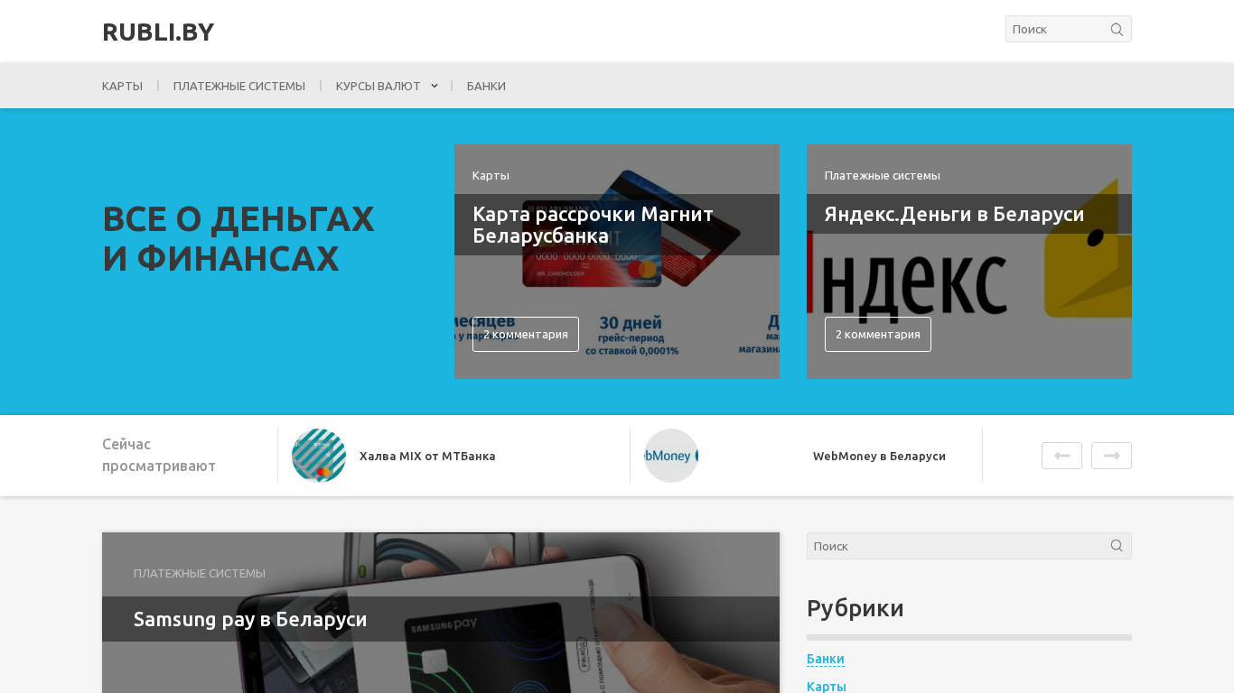 | AI-анализ | --- The portal Rubli.by is dedicated to all things related to money and finance in Belarus. It covers various topics such as cards, payment systems, currencies, cities, and cryptocurrencies. The site provides information on banks, including Belarusbank and VTB, and their internet banking services. Users can find instructions on how to use Samsung pay in Belarus and learn about the full list of participating banks. The portal also offers details on payment systems like Yandex.Money, Qiwi wallet, and WebMoney in Belarus, along with real-time currency exchange rates. Additionally, the site includes articles on using PayPal in Belarus, internet banking with Belarusbank, and information about various credit cards, such as those offered by Euroopt and MTBank. |