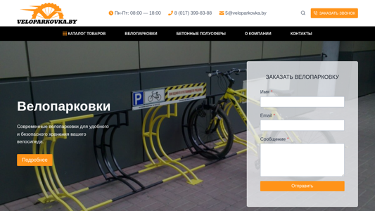 | AI-анализ | --- The web project "Veloparkovka.by" offers bicycle parking lots for sale in Minsk. The assortment includes various models and sizes to meet different project requirements. |