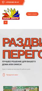 | AI-анализ | The portal is a home improvement website specializing in the sale and installation of sliding partitions, operating throughout Belarus. The website offers both aluminum and glass sliding partitions as the best solution for efficient space zoning in residential and commercial properties. The installation time is 60 working days from order placement. The business is located in Bobruisk, Belarus at 50 years VLKSM, 16, and is open for inquiries and orders Monday through Friday from 9:00 AM to 7:00 PM and on weekends from 10:00 AM to 4:00 PM. The website provides contact information, including a phone number and email address, for customers to make inquiries or place orders. The website also mentions that it caters to designers and offers relevant details and color options. The homepage includes a call-to-action button for |