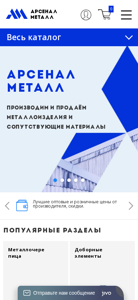 | AI-анализ | --- This website is for ArsenalMetal, a company specializing in metal products for roofing and related goods. The product range is extensive, including metal tiles, profiled sheets, and various accessories. The price list is updated on November 11, 2021. Delivery is available throughout Belarus, with options for both wholesale and retail sales. The contact information includes several phone numbers and an email address. The website also features a personal account section for managing orders and account settings, as well as information about delivery and payment methods. The catalog includes sections for various roofing materials, facade systems, gutters, and doors. The company also offers used industrial presses from Europe for sale. The website is copyrighted by OOO ArsenalMetal from 2016 to 2025. |