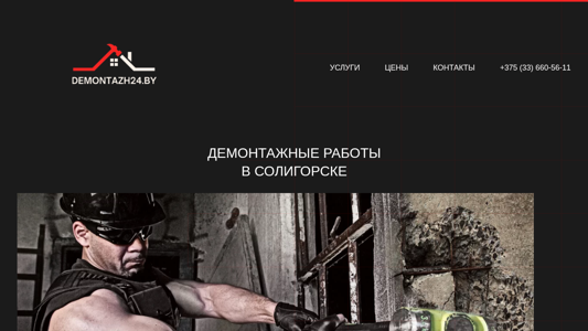 | SEO-описание | Профессиональный демонтаж в Солигорске. Доступные цены. Оперативный выезд. |