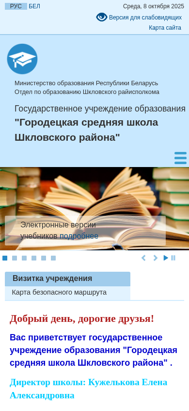 | AI-анализ | --- The portal "Gorodetskaia Sredniaia Shkola Shklovskogo Raiona" is a website for a secondary school located in the Shklovsky region of Belarus. The website provides information on the school's schedule, administrative procedures, contacts, and educational programs. Keywords associated with the site include 'school', 'education', 'schedule', 'administration', and 'Shklovsky region'. The website includes a map of the Ministry of Education in Belarus and information on the structure of the educational institution. Users can find information on the school's administrative hours, application process, faculty, and various educational resources. The site also includes a section for parents with information on school meals and a resource center for students. The website is primarily text-based with some images and is available in both Russian and Belarusian languages. |