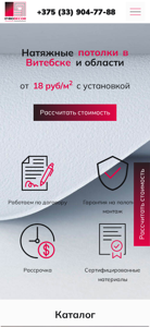 | AI-анализ | --- This online resource is titled "Евро Декор" and is a catalog website for lighting fixtures and related products. The description field is empty, but the top words suggest that the site offers discounts and ready-to-install solutions for suspended ceilings in the Vitsebsk region of Belarus, with prices starting from 18 rubles per square meter. The site also mentions matte, satin, and glossy finish options for the ceiling materials, as well as mentions of work under contract, guarantees, and financing. The site also sells various types of lighting fixtures, and offers the ability to calculate costs and place orders for consultations. The site has sections for information about the company, their work, customer reviews, and contact information, which includes phone numbers for ordering consultations. The site offers several types of suspended ceilings: matte, satin, and gl |