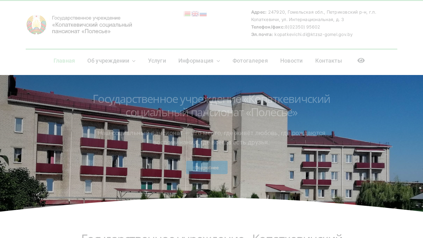 | Название / Заголовок | Главная - Государственное учреждение «Копаткевичский социальный пансионат «Полесье» |