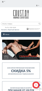 | AI-анализ | The website is an e-commerce store selling leather goods and accessories, named "Crust." It offers a range of leather belts, with various color and standard options, and includes features for customers to determine the correct size and shorten the length of their belts. The website also provides information on shipping and payment, as well as contacts for customer service and returns. Users can create an account, save items for comparison, and make purchases. The store offers a customer service section with information on orders, delayed items, and returns. The website is registered as an individual entrepreneur business, with contact information and a registration number provided. |