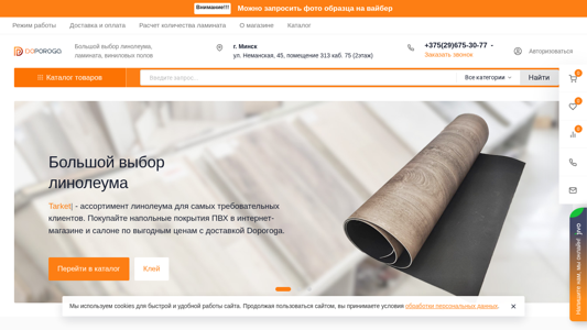 | AI-анализ | The web project "Doporoga.by" is an e-commerce platform for selling various flooring materials, including vinyl rolls, linoleum, and laminate, with delivery throughout Belarus. The website offers a wide selection of products from leading manufacturers, with assistance provided in making a purchase decision and competitive pricing. Customers can contact the store using the phone number 8-029-675-30-77. Keywords for the site include 'linoleum', 'buy linoleum', 'buy laminate', 'buy laminate in Minsk', 'prices for laminate', 'prices for linoleum', 'vinyl rolls', 'vinyl laminate', 'quartz vinyl tile', and 'purchase flooring'. The top words appearing on the site are 'rub' (208), |