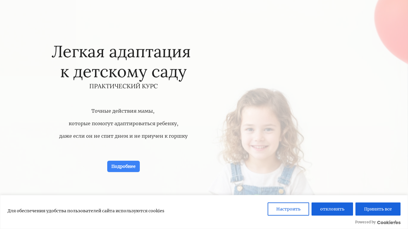 | SEO-описание | Адаптация вашего ребенка к детскому саду: мягко, безболезненно, легко. Авторский подход с видимым результатом. |