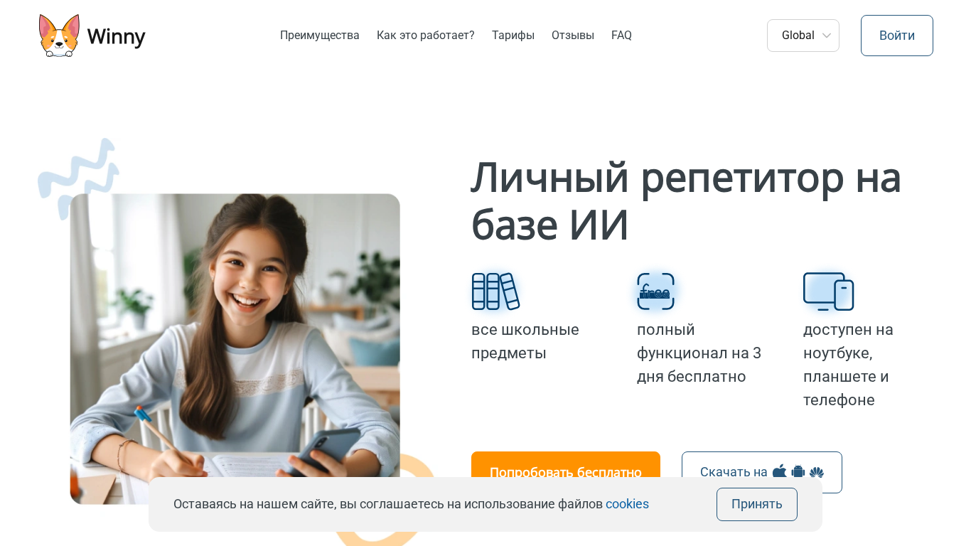 | Название / Заголовок | Winny AI Tutor. Образовательный чатбот - помощник и репетитор для школьников на базе ИИ |