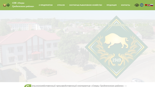 | AI-анализ | The portal 'СПК "Озеры Гродненского района"' is a website for a cooperative agricultural production enterprise named 'СПК "Озеры Гродненского района"' (agricultural production cooperative 'Lakes of Grodno region') located in the village of Ozery, Grodno region, Belarus. The cooperative specializes in various agricultural activities, including but not limited to, cultivation of sugar beet, grains, legumes, corn, sunflower, fruits and vegetables, livestock farming for milk and meat production, and an independent hunting and fishing business. The website provides information on the cooperative's history, social activities, and achievements. It also features a virtual honor roll, news and event sections, and contact information for electronic inquiries. The cooperative is known for its significant contributions to agriculture in the region. |