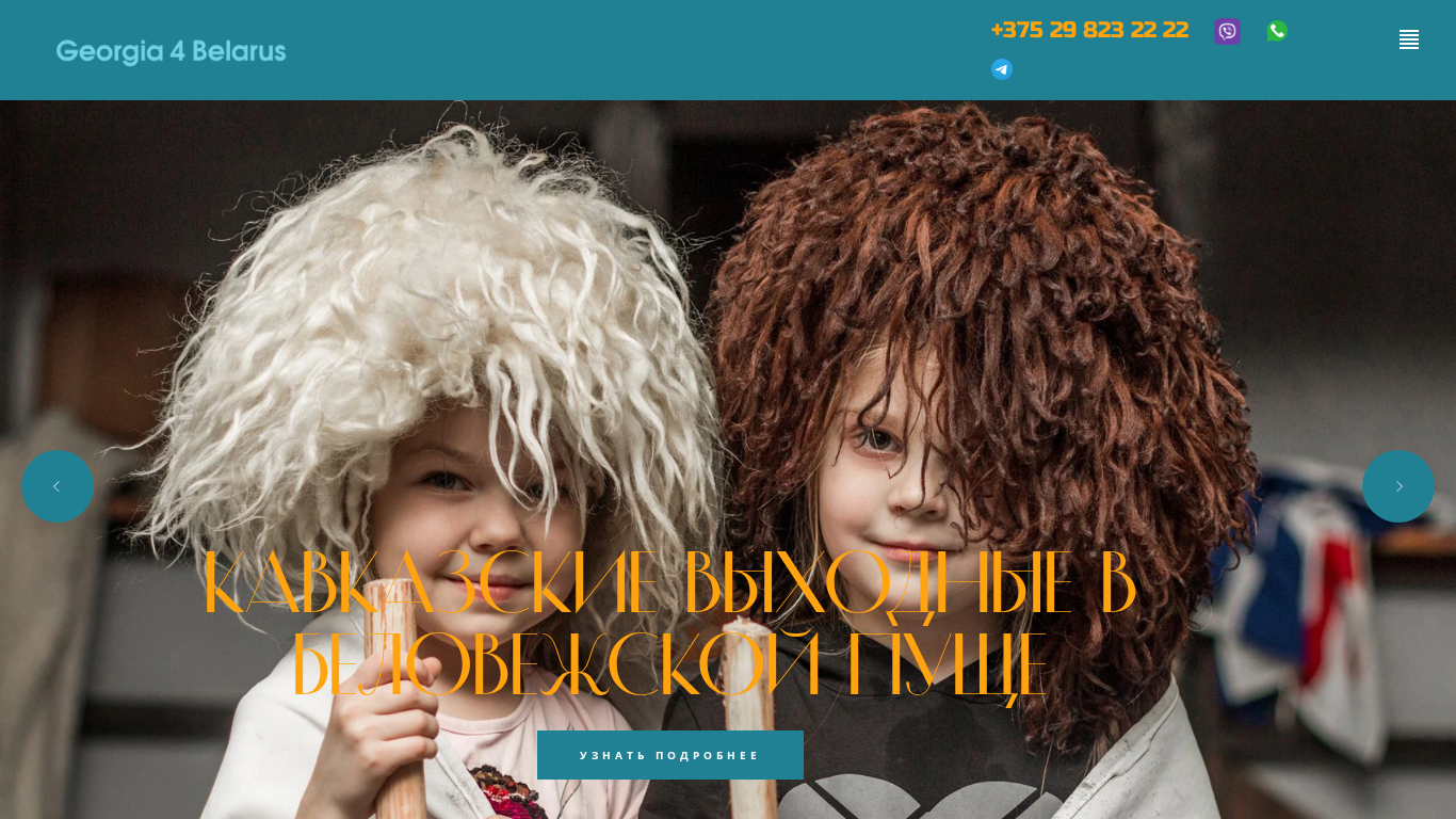 | AI-анализ | The portal georgia4belarus.by offers tours in Georgia and more! Their tour provides a variety of locations, landscapes, and activities. Over a thousand tourists have fulfilled their dreams through this portal. The website includes sincere real reviews, and visitors can contact them directly for answers to their questions at +375 29 823 22 22. The offered tours include a Caucasian weekend in the Belovezhskaya Pushcha forest and rafting on the Lesnaya River. The Caucasian weekend includes a river rafting trip of about 4 hours, a meal and dinner in a banquet hall, and various activities such as dancing, singing, karaoke, and a banya. The rafting in Brest on the Lesnaya River also offers a 4-hour trip, a meal on the riverbank, |