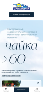| AI-анализ | This website is for the "Chayka" Sanatorium in Mogilev, Belarus. It offers various services including renting cabins and barbecue areas, sports equipment, banquet halls, a pool, billiards, infrared sauna, cedar barrel sauna, leisure and medical procedures, information about vacancies, and various forms of recreation and entertainment. The website also provides history, menu, pricing, news, and photo reports of the sanatorium. It is located in the Mogilev region, 15 km from Mogilev city. The website includes online booking and contact information. The sanatorium offers over 60 health and recreational procedures and activities for all ages. The website provides information about accommodations, leaving a request, and booking online. The sanatorium is a year-round health resort. |