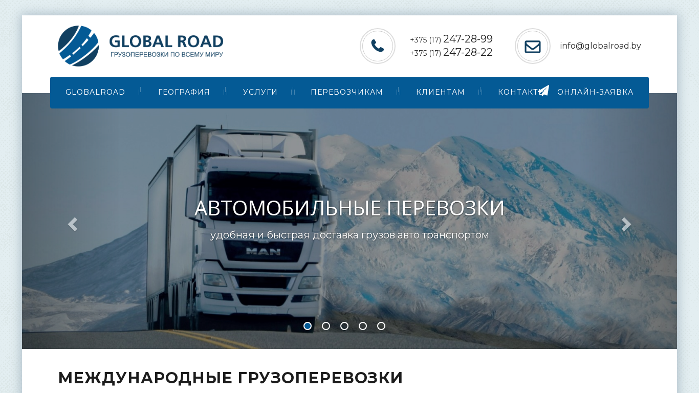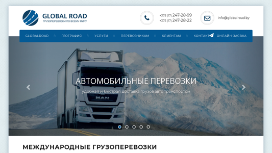 | SEO-лексика | перевозки грузов услуги международные транспортом грузоперевозки груза глобалроуд морские доставка доставки globalroad 375 компании клиентов авиаперевозки мультимодальные складские таможенные объекты |