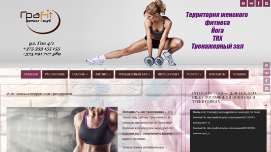 | AI-анализ | The web project is a website for the women's fitness club Grafit located in Minsk, Belarus. It provides information about the club, its schedule, rules, services, prices, and contact details. The website also offers news articles on various fitness topics, such as interval training and workouts for plus-size women. The main focus of the site is on the club's fitness classes, including Intensive, TRX, step aerobics, circular training, Pilates, body sculpt, and interval/circular training. The site offers personal training sessions and has a photo gallery. The author of the content is Grafit. The website also features news articles, a subscription pricing plan, gift certificates, and information on Body Shape Vacu Activ 10 in 1 and Activ roll products, as well as an infrared sauna. The site is built on WordPress and uses the WP-content |