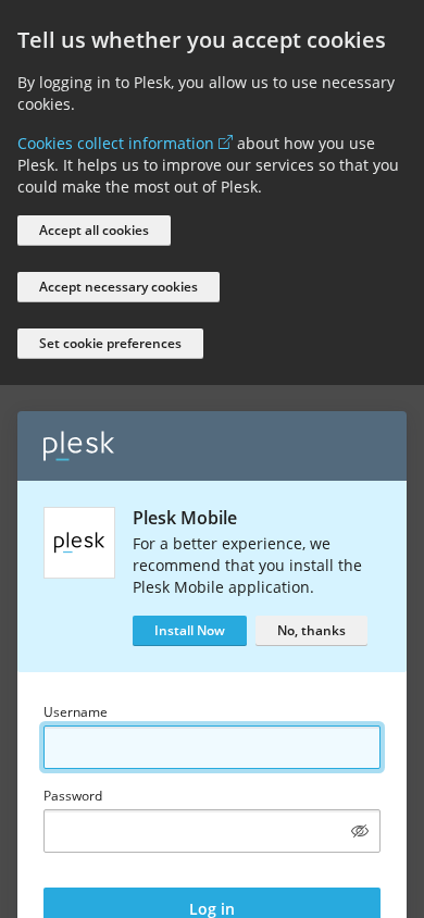 | AI-анализ | This website, crane.by, is the login page for Plesk Obsidian 18.0.72. Users are required to enter their username and password to gain access. The website notifies users about the use of necessary cookies and provides an option to accept or set cookie preferences. The cookies policy is also accessible on the page. |
