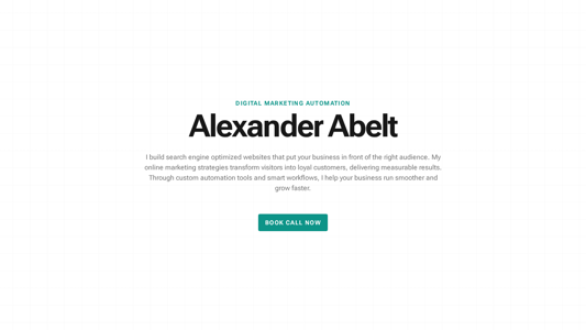 | AI-анализ | This website, titled "Alexander Abelt | Digital Marketing Automation," offers expert web development and SEO services. The description states that it transforms online presence with custom websites, proven marketing strategies, and smart automation solutions. The top_words indicate an emphasis on digital marketing, automation, and business growth. The website is optimized for search engines and focuses on building websites that place businesses in front of their target audience. It also mentions the use of custom automation tools and smart workflows to improve business operations and efficiency. The domain is powered.by. |