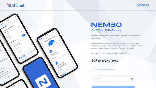 | AI-анализ | The portal Nembo.mtbank.by is an online currency exchange service where users can exchange their currency profitably and conduct transactions online and at MTBank branches, with the option to lock in exchange rates up to two hours in advance. The service is accessible to clients of all banks. The website invites users to invest in precious metals, exchange currency online 24/7, fix exchange rates for cash transactions within two hours, open metal accounts, and earn from investments in Gold, Silver, Platinum, and Palladium. The system can be accessed by logging in with a phone number and password. |