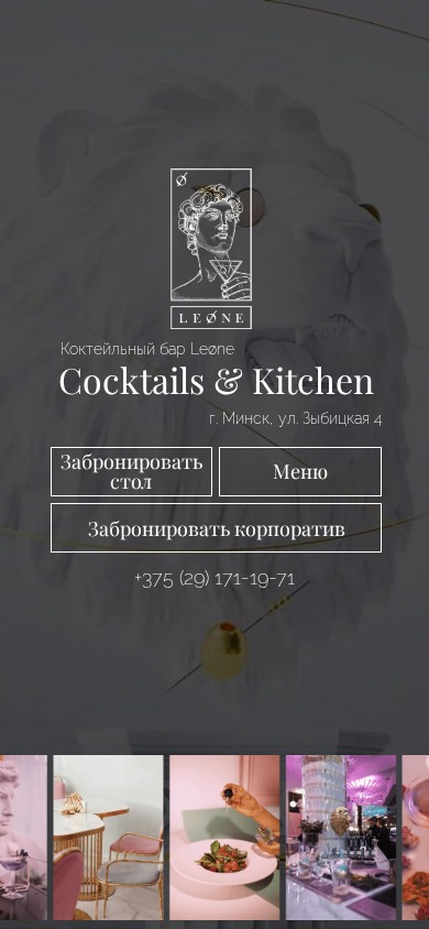 | AI-анализ | The portal Bar Leone is a gastronomic bar that embodies the philosophy of enjoying life - hedonism. Here one can relax after a hard working day, spend time in the company of loved ones, have a loud and fun evening with friends, or arrange a romantic dinner filled with attention and surprises. The bar is located in Minsk, Zybitzkaia Street 4. Visitors can make reservations for a table or corporate event by leaving their contacts, and the bar's phone number is +375 (29) 171-19-71. The menu of the bar includes cocktails and kitchen items. The bar also has an Instagram account for staying updated on the latest events. Potential employees can leave their contact information to be contacted within 5 minutes if they are interested in working in a large, friendly, and dynamically developing team with opportunities for professional |