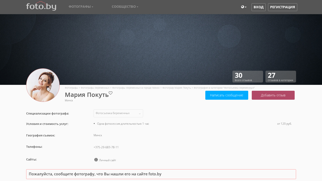 | SEO-описание | Фотографии в категории "Фотосъемка беременных". Сайт фотографа Мария Покуть. Я работаю как фотограф беременных в городах Минск |