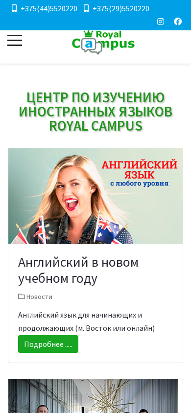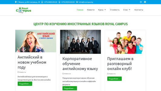| AI-анализ | The portal Royal Campus is a language school in Minsk, Belarus, offering courses in English, Polish, and Portuguese. It provides various programs and methods for teaching these languages, including individual instruction and courses for children. The website includes sections for news, pricing, information about the school, a photo gallery, and contacts. The school offers news and courses for beginners and advanced English learners, as well as corporate English training in online and offline formats. It also invites students to join a conversation club and offers additional grammar classes on Saturdays. The school emphasizes the importance of effective conversation practice and maintains small group sizes to accommodate individual learning styles. The office is conveniently located near the East metro station and Danamall shopping center. Students can attend a free speaking club with a native speaker and additional grammar classes. The school guarantees high-quality instruction with experienced teachers, and offers flexible payment |