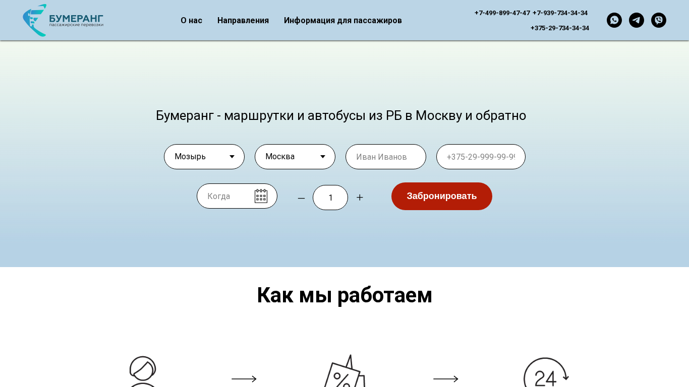 | Название / Заголовок | Компания Boomerang - услуги по пассажирским перевозкам в Москву и обратно |