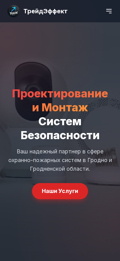 | SEO-описание | ООО 'ТрейдЭффект' - ваш надежный партнер по проектированию, монтажу и обслуживанию охранно-пожарных систем, видеонаблюдения и контроля доступа в Гродно и Гродненской области. |