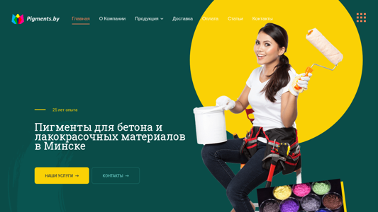 | AI-анализ | The web project Pigments.by was established in 2007 and has been specializing in the supply of pigmented dyes from various regions in Southeast Asia ever since. After extensive market research, the decision was made to focus on sourcing products from India. Indian pigments are renowned for their high intensity, lightfastness, and purity of color, which enables the production of high-quality coated materials based on these pigments. The company's contacts are located in Minsk, Belarus, at Central Street 47. Phone numbers are +375 (29) 161-75-82 and 8 (029) 396-59-54. The company has over 25 years of experience in supplying pigments for concrete and coated materials in Minsk. Their services include wholesale deliveries |