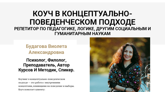 | AI-анализ | --- The portal leila.by is dedicated to coaching services provided by Viola Budagova, a psychologist, philologist, and educator. The website offers coaching in a conceptual-behavioral approach, which focuses on working with inner concepts that influence behavior and choices. Viola helps clients to recognize and rebuild limiting beliefs, strengthen their personal position and values, transition from automatic reactions to conscious actions, and integrate experiences into a stable inner support system. The coaching is suitable for individuals seeking depth, clarity, and personal growth. Additionally, there are coaching services for couples, which offer a space for partners to explore their inner concepts affecting their interactions. The coach helps couples to identify and recognize personal and shared scenarios, untangle automatic reactions and conflicts, foster open communication and mutual support, and create new forms of interaction based on values and choice. The services provided by the coach include consultation on specific subjects, academic disciplines, and academic |