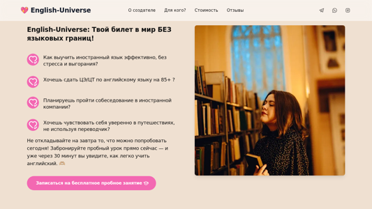 | Название / Заголовок | English-Universe: Твой билет в мир БЕЗ языковых границ! ✨ |