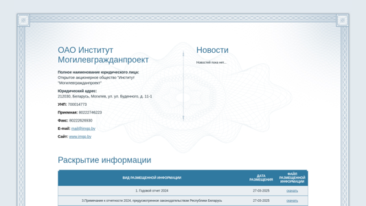 | Название / Заголовок | Институт Могилевгражданпроект ОАО |