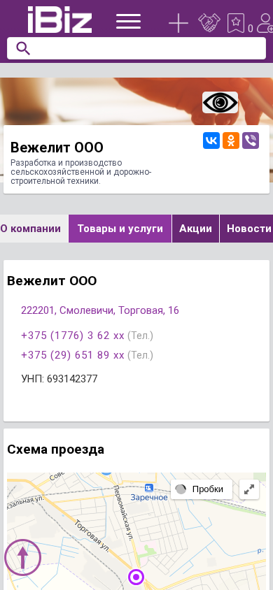 | SEO-описание | Вежелит ООО - Разработка и производство сельскохозяйственной и дорожно-строительной техники.. Схема проезда, контактные телефоны, адрес компании Вежелит ООО. 222201, Смолевичи, , Торговая, 16 |
