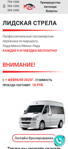 | AI-анализ | The portal minsk-lida.by is dedicated to passenger transportation services between the cities of Lida and Minsk in Belarus, operated by "Лидская Стрела". Users can make online bookings for seats on buses using several phone numbers and mobile applications. The website also offers FAQs, a fleet description, and information on the advantages of choosing this transport company. The site's top keywords include "Лида-Минск," "Лидская," "стрела," "перевозки," and various phone numbers. The title of the website is "Маршрутка Лида-Минск, Лидская Стрела, Минск-Лида, Пассажирские перевозки Лида-Минск." |