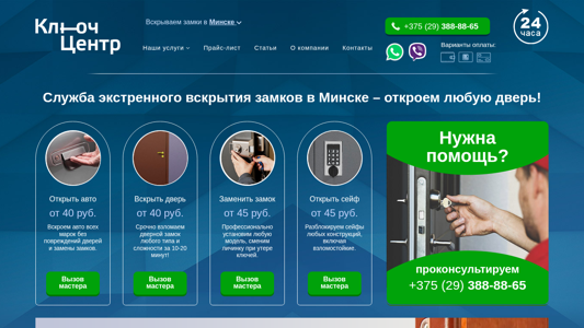 | Название / Заголовок | ВСКРЫТИЕ ЗАМКОВ в Минске - цены от 30 руб. | Аварийная служба 24/7 КлючЦентр |