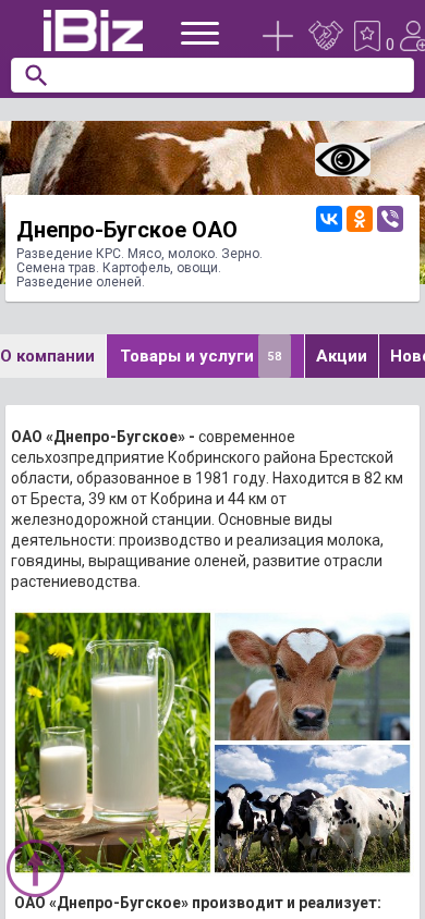 | AI-анализ | The portal Dnepro-Bug.ibiz.by is a Belarusian agricultural enterprise, specifically focused on livestock farming, milk and meat production, and crop cultivation. The company, named Dnepro-Bug OAO, is located in the Orekhovsky agricultural cooperative at Lenina 11, in the Brest Oblast. The primary activities include breeding and raising cattle for milk and meat, growing crops such as corn, raps, and sunflowers, and raising deer. The company offers its products and services for purchase, including milk, beef, corn, rapseed, and sunflower seeds. The enterprise owns a total of 5,308 hectares of land, with 4,094 hectares dedicated to agricultural use, including 1,372 hectares of arable land and 2,72 |