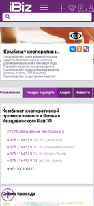 | AI-анализ | This online resource is a website for the Ivacevich Regional Agricultural Production Cooperative Factory branch, which produces bread and bakery products, non-alcoholic beverages, mineral and drinking water, processes fish and seafood, manufactures polyethylene products (plastic, packaging, PET bottles), and confectionery items. The address is 225295, Ivacevichy, Zaslonova Street, 5. The company can be reached by phone at +375 (1645) 9 25 xx (Director), +375 (1645) 9 11 xx (Chief Engineer), +375 (1645) 9 33 xx (Sales Department), and +375 (1645) 9 28 |