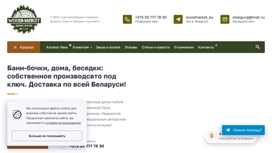 | Название / Заголовок | Woodmarket.by — садовые дома и бани под ключ — Woodmarket.by — собственное производство садовых домиков и бань. Доставка по Беларуси, монтаж под ключ. |