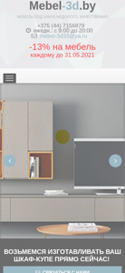 | AI-анализ | --- The web project "Mebel-3D.by" is an online catalog for custom-made furniture in Belarus, specifically in Minsk and the surrounding area. Featuring over 2000 photos, the site offers a wide range of furniture for purchase or order, including cabinetry for various rooms like living rooms, bedrooms, and kitchens. Prices start at 180 Belarusian rubles, and the company provides design consultation, delivery, and installation services. The site offers a selection of cabinetry styles, materials, and customization options, including radiussed, multilevel, and mirrored designs. Furniture can be purchased directly or ordered with custom dimensions. The site also provides contact information for the company, including phone numbers and email. Keywords associated with the site include "custom furniture," "furniture order," and "custom cabinetry in Min |