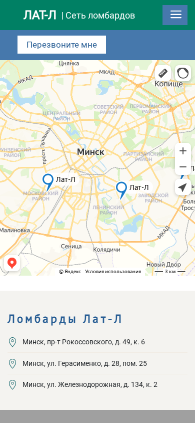 | AI-анализ | The web project "Ломбарды Лат-Л — Ломбарды" is a lending service based in Minsk, Belarus. The title of the website is "Ломбарды Лат-Л — Ломбарды" and the keywords include "минск," "лат-л," "компании," and "ломбарды." The top words are "минск," "лат-л," "375," and "пн-пт." The website provides information about the company, contacts, and offers loans with fair conditions for various items such as gold, silver, notebooks, mobile phones, construction tools, and other valuable possessions. The loans can be obtained quickly and without delay at any of their offices located in Minsk at pr-t Рокоссовского, d. 49, к. 6; |