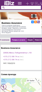 | AI-анализ | --- This website belongs to Business Assurance, one of the leading auditing and consulting companies in the Republic of Belarus. Services include auditing, legal and tax consulting, consulting, and outsourcing of business processes. The company's address is ООО Лигал Ашуренс, located at 220020, Minsk, Победителей пр-т, 103. Contact information includes phone numbers +375 (17) 308 74 xx. The company's UNP number is 192622210. |