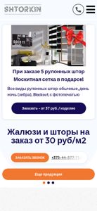 | AI-анализ | The website shtorkin.by is an e-commerce platform selling custom curtains and blinds, with a focus on a wide range of options including horizontal and vertical blinds, wooden blinds, roll-up curtains, roman shades, and pallisse curtains. The site also offers automatic blinds and discounts. Customers can place orders for free installation and receive a guarantee on materials for up to 2 years. The site accepts online orders and phone inquiries, with a phone number provided. The site offers roll-on curtains in various styles including standard, day-night (zebra), blackout, and photo-printed versions. Prices start from 30 rub/m2 for roll-on curtains and 75 rub/m2 for roman shades. New products include Japanese-style curtains and a pallisse style. Customers can request a price |