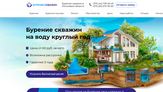 | Название / Заголовок | Бурение скважин в Могилеве по недорогой цене в рассрочку 0% под ключ |