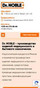 | AI-анализ | --- The web project Dr NOBLE is a manufacturing company based in Minsk, Belarus. They specialize in the production of both medical and household items, including single-use laminated paper medical wipes and disinfectants. The company's address is located at pr. Zviazda, 28-1-48 in Minsk, and operates daily from 8:00-18:00. Contact details are available at +375-44-779-55-88 or via email at info@noble.by. Their product range includes disposable laminated paper medical wipes and disinfectants, which are used extensively in medical centers, hospitals, medical laboratories, polyclinics, veterinary clinics, tatoo salons, and beauty salons, as well as for household purposes |